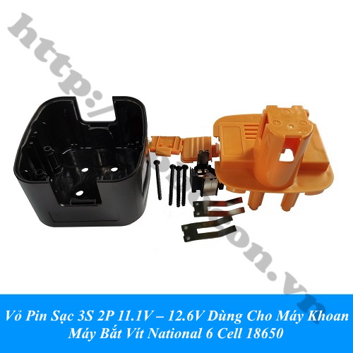 Vỏ pin sạc 3S 2P 11.1V – 12.6V dùng cho máy khoan, máy bắt vít National 6 cell 18650 dùng để DIY dành cho máy khoan pin, máy vặn bulong, bê tông national 11.1v, 12.6v vỏ đựng được tối đa 6 cell pin lion, sử dụng mạch bảo vệ 3S 12.6v dòng xả cao.