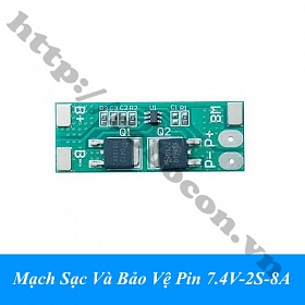 - Mạch Sạc Và Bảo Vệ Pin 7.4V-2S-8A được sử dụng để sạc 2 cell pin 18650 mắc nối tiếp và bảo vệ pin chống quá tải khi sử dụng chạy tải, mạch có chức năng sạc riêng rẽ cho từng cell (balance charging), ngắt khi đầy, bảo vệ chập nguồn, quá áp và pin dưới áp quy định.
