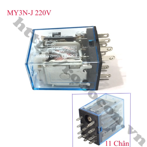 - Relay trung gian MY3N-J 220V 5A 11 chân là thiết bị điện dùng để đóng cắt mạch điện điều khiển, cũng như trong công nghiệp với ứng dụng để bật tắt các thiết bị công suất lớn.