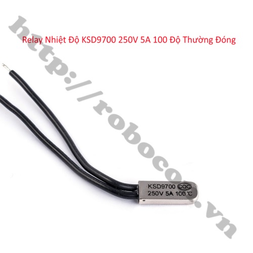 - Relay nhiệt độ KSD9700 250V 5A 100 độ thường đóng là thiết bị đóng ngắt tín hiệu cơ bản , nó được sử dụng rất nhiều trong các thiết bị điện tử : mạch điều khiển , mạch cách ly , mạch nguồn, ấm đun nước,…