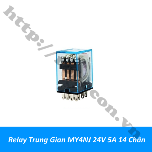 - Relay trung gian MY4NJ 24V 5A 220VAC 14 chân là thiết bị điện dùng để đóng cắt mạch điện điều khiển, cũng như trong công nghiệp với ứng dụng để bật tắt các thiết bị công suất lớn.