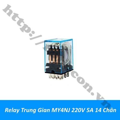 - Relay trung gian MY4NJ 220V 5A 220VAC 14 chân là thiết bị điện dùng để đóng cắt mạch điện điều khiển, cũng như trong công nghiệp với ứng dụng để bật tắt các thiết bị công suất lớn.