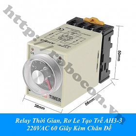 RE59 Relay Thời Gian, Rơ Le Tạo Trễ AH3-3 220VAC 60 Giây Kèm Chân Đế