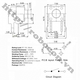 Kích Thước Nút Nhấn 4 Chân Nằm Ngang 6x6x9.5mm