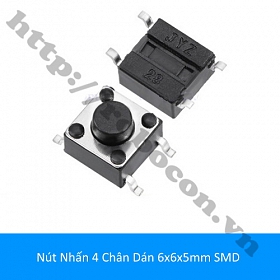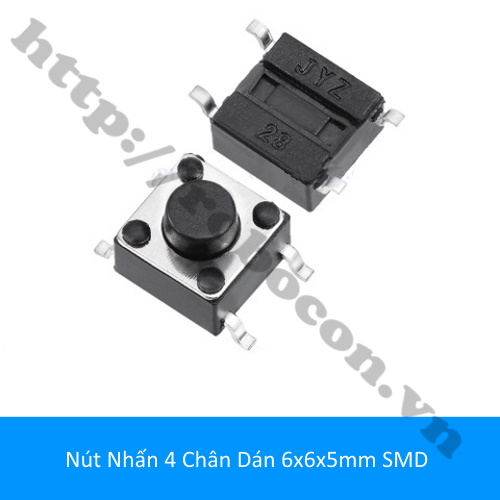 - Nút nhấn 6x6x5mm SMD nhấn nhả với ưu điểm nhỏ gọn, dễ dàng lắp đặt nên thường được dùng làm nút reset, nút nguồn trong các mạch điện tử thông dụng, ứng dụng làm nút nhấn cho thiết bị điện như mạch loa, âm ly, mạch điều khiển, mạch nguồn, reset, nút nguồn và các loại mạch điện thông dụng khác