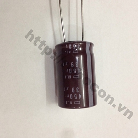 Tụ hóa 39uF 450V là loại tụ có giá trị điện dung cố định, tụ phân cực, có dung môi là một lớp hóa chất. Tụ hóa 39uF 450V là tụ có hình trụ, trị số được ghi trực tiếp trên thân tụ. Sau trị số điện dung bao giờ cũng có giá trị điện áp, điện áp ghi trên tụ chính là điện áp cực đại mà tụ có thể chịu được, vượt qua giá trị này thì lớp cách điện sẽ bị đánh thủng, trong thực tế ta phải lắp tụ có trị số điện áp cao gấp khoảng 1,5 lần điện áp của mạch điện.