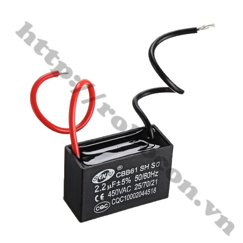 - Tụ quạt dây CBB61 2.2uf 450vđược dùng trong quạt làm kích dòng khởi động và làm việc tốt hơn các động cơ trong hệ thống cung cấp điện xoay chiều tần số 50Hz / 60Hz.