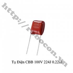 - Tụ điện CBB 100V 224J 5mm là tụ điện có điện môi được chế tạo theo công nghệ Polypropylene Film, 2 chân cắm của linh kiện được mạ thiếc.