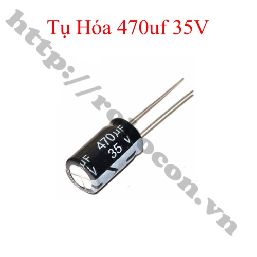 - Tụ Hóa 470uf 35v 15x10mm là tụ phân cực, có dung môi là một lớp hóa chất. Tụ hóa 220uf 35v là tụ có hình trụ, trị số được ghi trực tiếp trên thân tụ.
