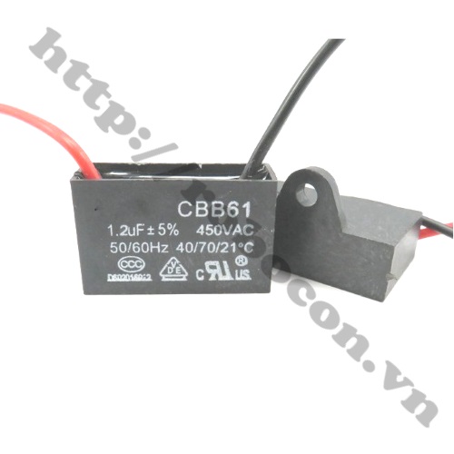- Tụ quạt dây CBB61 1.2uf 450v được dùng trong quạt làm kích dòng khởi động và làm việc tốt hơn các động cơ trong hệ thống cung cấp điện xoay chiều tần số 50Hz / 60Hz.
