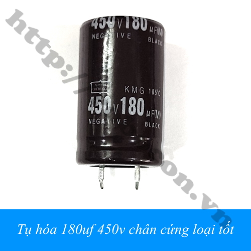 - Tụ hóa 180uF 450V là tụ phân cực, có dung môi là một lớp hóa chất. Tụ hóa 180uF 450V là tụ có hình trụ, trị số được ghi trực tiếp trên thân tụ.