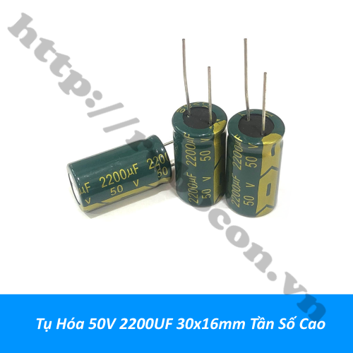 - Tụ hóa 50v 2200uf 30x16mm tần số cao là tụ phân cực, có dung môi là một lớp hóa chất. Tụ hóa 50v 2200uf là tụ có hình trụ, trị số được ghi trực tiếp trên thân tụ.