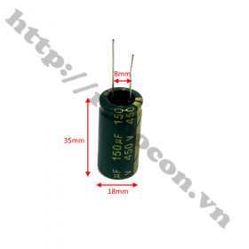 Kích Thước Tụ Hóa 450V 150UF 18x35mm Tần Suất Cao