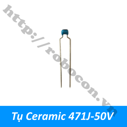 - Tụ ceramic 471J 50v là tụ điện có điện môi được chế tạo theo công nghệ ceramic, 2 chân cắm của linh kiện được mạ thiếc.
