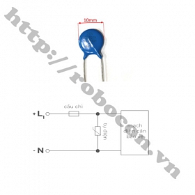 - Tụ điện chống sét 10D101K có điện áp 100v, vì vậy tụ có thể bảo vệ chống quá điện áp quá độ cho các mạch điện, mạch điện tử, mạch dao động, nguồn xung, lọc nhiễu, capacitor,…