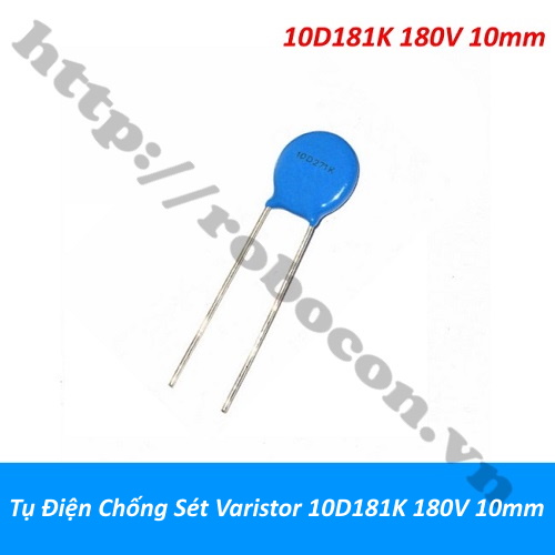 - Tụ chống sét 10D181K được sản xuất bằng công nghệ oxit kim loại, chân của linh kiện được phủ thiếc, đường kính của tụ 10mm.