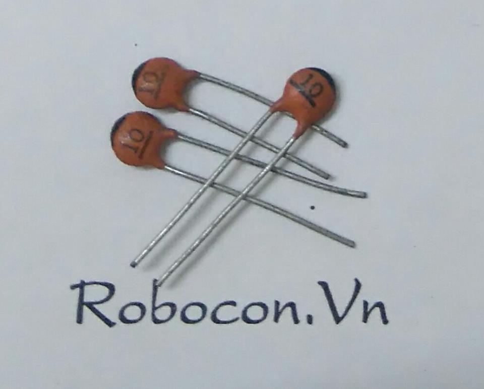Tụ gốm 10p là tụ điện có điện môi được chế tạo theo công nghệ gốm, 2 chân cắm của linh kiện được mạ thiếc. Tụ gốm 10p là tụ không phân cực có giá trị nhỏ thường được dùng trong các mạch cao tần hoặc mạch lọc nhiễu.