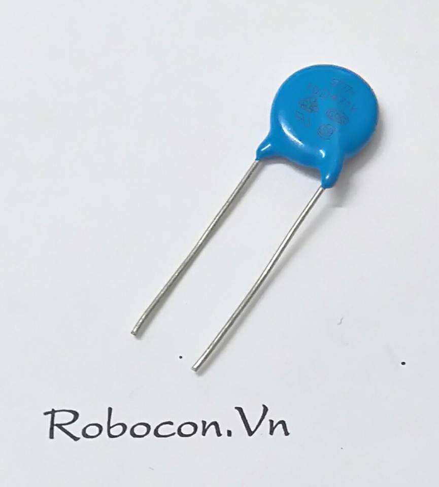 Tụ chống sét 10D471K được sản xuất bằng công nghệ oxit kim loại, chân của linh kiện được phủ thiếc, đường kính của tụ 10mm.
