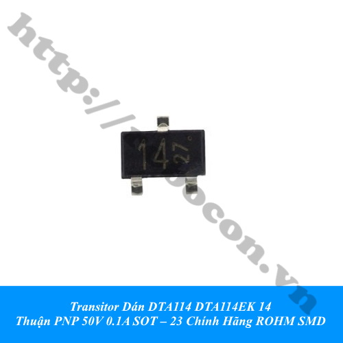- Transistor dán DTA114 DTA114EK 14 PNP 50V 0.1A SOT – 23 chính hãng ROHM SMD là loại digital transistorcó cấu tạo gồm 3 lớp bán dẫn ghép với nhau thành 2 mối nối P-N, thuộc loại transistor thuận PNP. Transistor DTA114 được sản xuất theo chuẩn SOT – 23