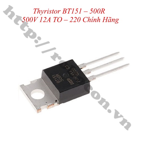 Thyristor BT151-500R của hãng NXP là chỉnh lưu silic có điều khiển (SCR), là linh kiện thụ động SCR, được sản xuất theo chuẩn TO-220 vỏ nhựa.