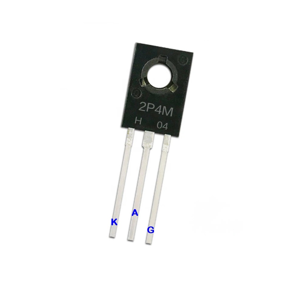 - Thyristor Thyristor 2P4M 400V 2A TO-126 có ba cực hoạt động là anode (A), cathode (K) và cực điều khiển (G), nó có vai trò như một khóa điện tử có điều khiển. Trong đó Thyristor chỉ cho phép dẫn điện từ Anot sang Katot khi cho một dòng điện kích thích vào chân G