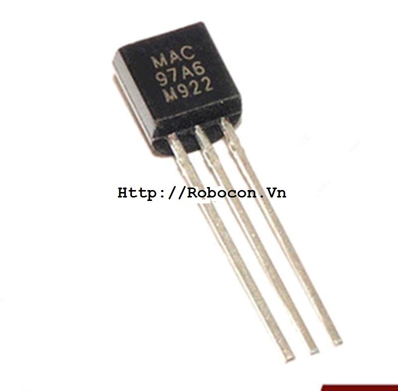 Triac MAC 97A6 là một linh kiện bán dẫn làm việc như 2 Thyristor mắc song song ngược chiều, có thể dẫn điện theo hai chiều. Triac MAC 97A6 được đóng gói theo chuẩn TO-92, gồm 3 chân.